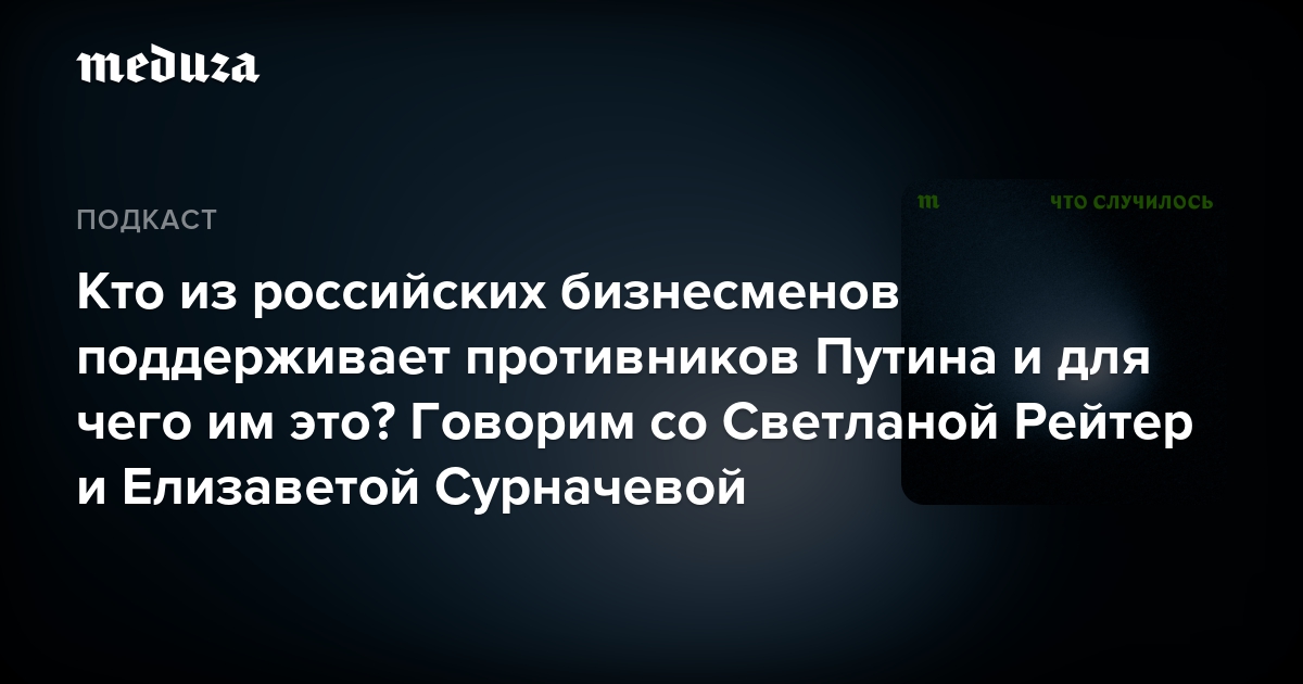 Как российские бизнесмены поддерживают оппозиционеров? И что рассчитывают получить взамен? Обсуждаем с авторами совместного текста «Медузы» и «Системы» Светланой Рейтер и Елизаветой Сурначевой.