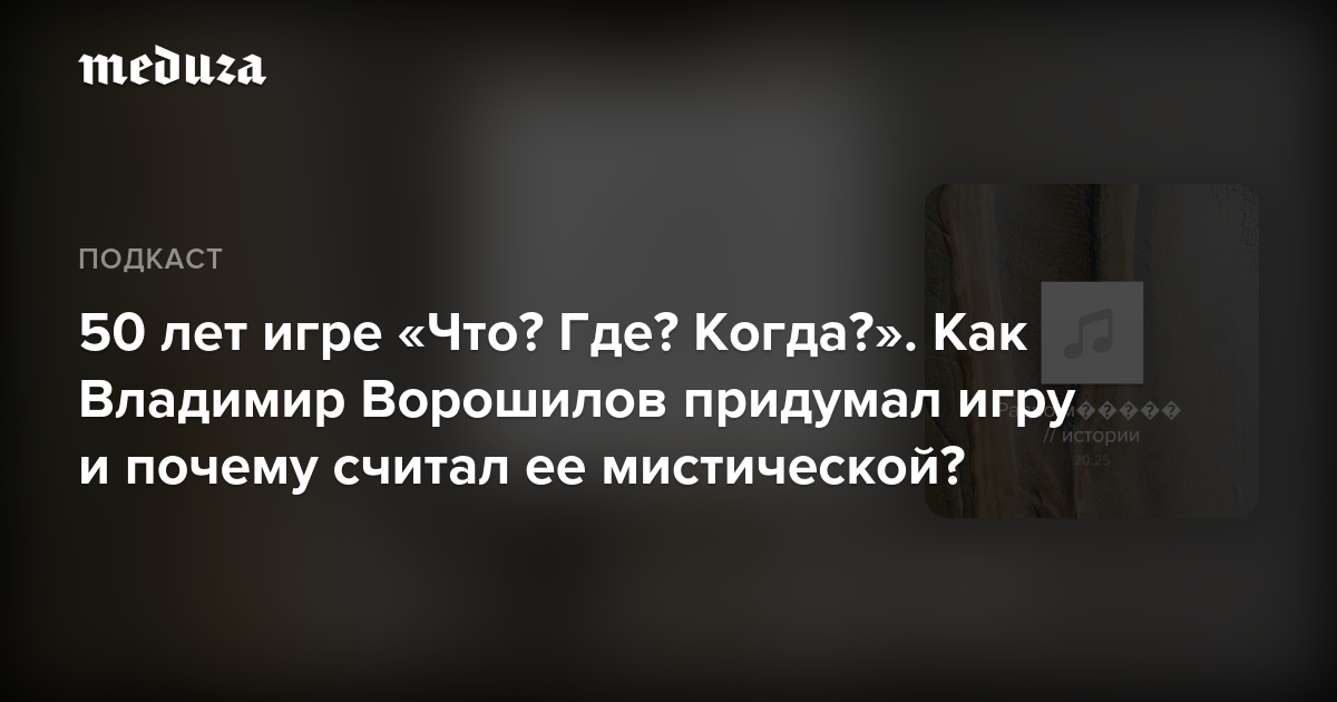 Первый выпуск «Что? Где? Когда?» вышел в начале сентября 1975 года. Спустя 50 лет передача все еще идет по Первому каналу, хотя многие знатоки, выступившие против войны России с Украину, в ней больше не участвуют, а при повторах редакторы цензурируют старые записи.