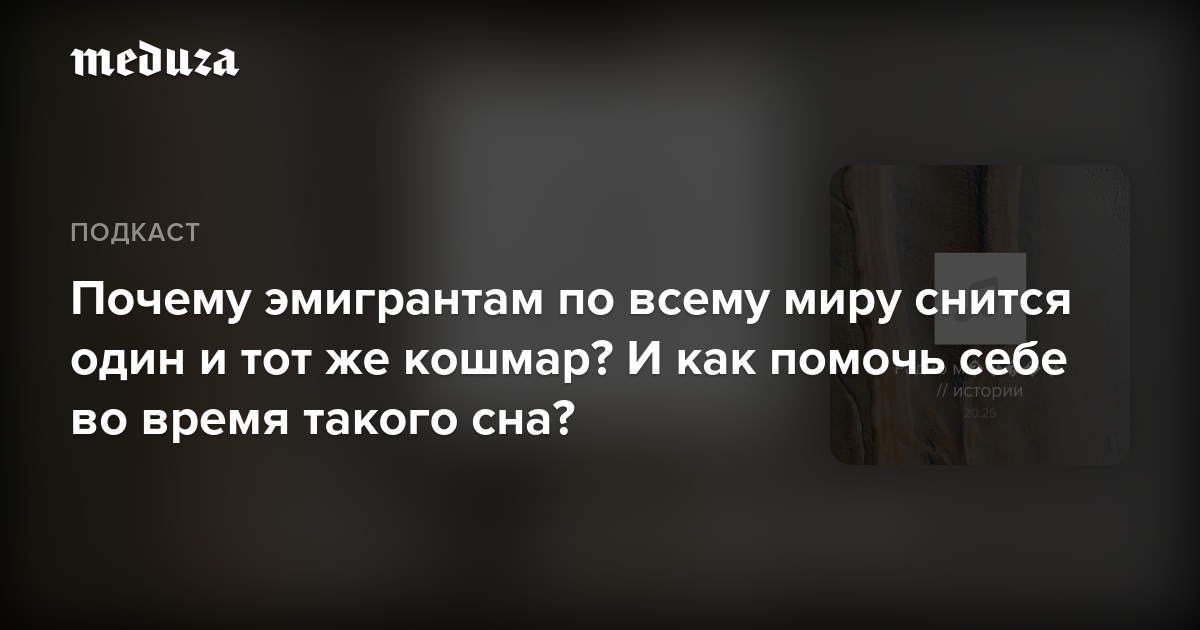 В русскоязычных соцсетях встречается множество публикаций эмигрантов о страшных снах, которые им снятся. Сюжет этих кошмаров у многих похож: им снится, что они возвращаются в Россию, а затем не могут уехать оттуда.