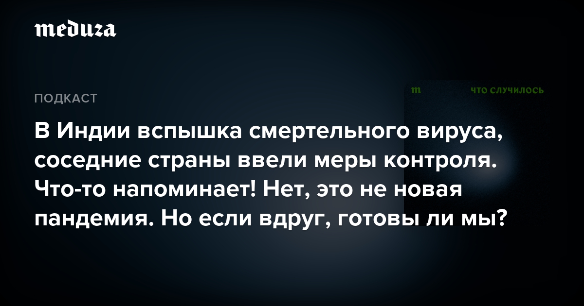 В индийском штате Западная Бенгалия зафиксировали вспышку опасного для людей вируса Нипах. У болезни тяжелое течение с высокой летальностью, вакцины от вируса нет. Чтобы предотвратить распространение заболевания, в Азии уже усиливают проверку прибывающих из Индии.