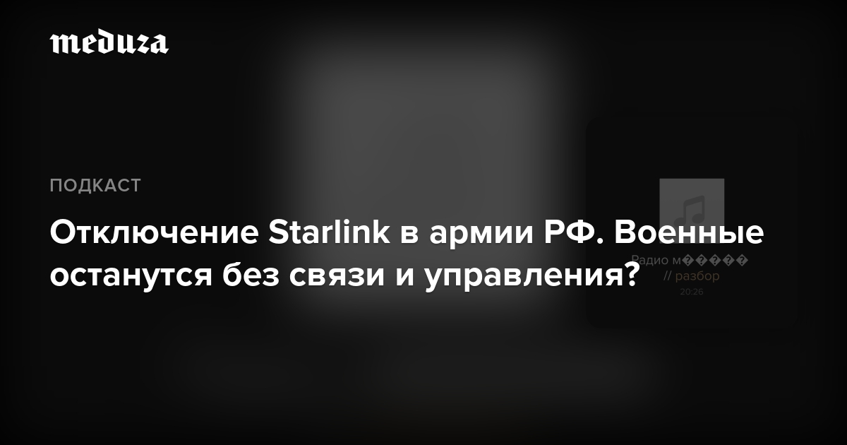 Почему ВС РФ вообще пользовались «недружественной» технологией? Как Starlink применяют ВСУ? И чем отключение спутниковой связи грозит российским военным? Могут ли они найти альтернативы Starlink? Послушайте подробный разбор «Медузы», а прочитать текст можно здесь.