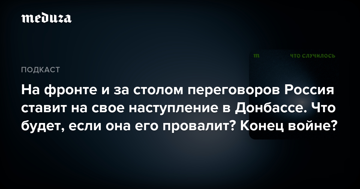 В регулярном выпуске подкаста о событиях войны свое мнение о том, как поменялся этот конфликт и как он может развиваться дальше, высказывает военный обозреватель «Медузы» Дмитрий Кузнец. В частности, он рассуждает о том, что будет, если армия РФ провалит идущее сейчас большое наступление в Донбассе, то есть не сможет захватить Славянско-Краматорскую агломерацию.