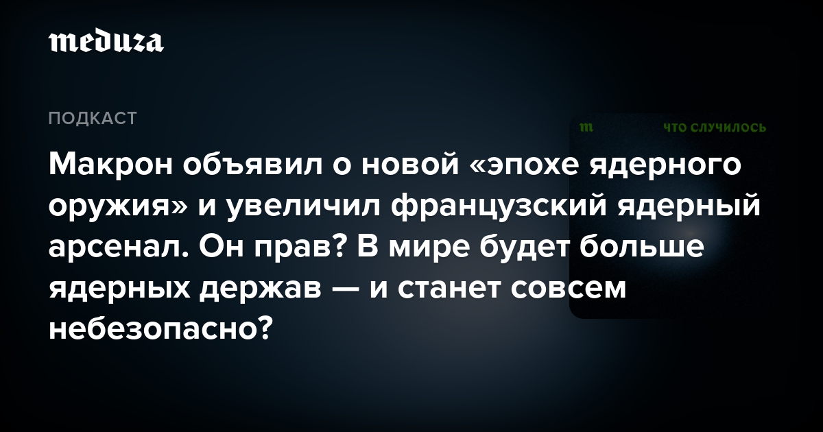Президент Франции Эммануэль Макрон объявил о наступлении «эпохи ядерного оружия». По его словам, «чтобы быть свободным, нужно внушать страх», поэтому страна увеличит количество ядерных боеголовок (это произойдет впервые с 1992 года).