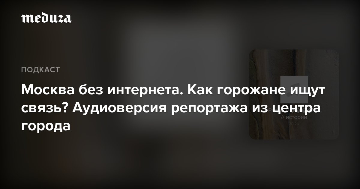 В Москве продолжаются проблемы со связью. Уже неделю в центре города нет мобильного интернета, а публичный вай-фай на улицах не работает. Тем не менее вай-фай работает в метро, на вокзалах и в некоторых кофейнях. Как теперь выглядит обычный день москвича? Послушайте аудиоверсию репортажа кооператива независимых журналистов «Берег». Прочитать текст можно здесь.