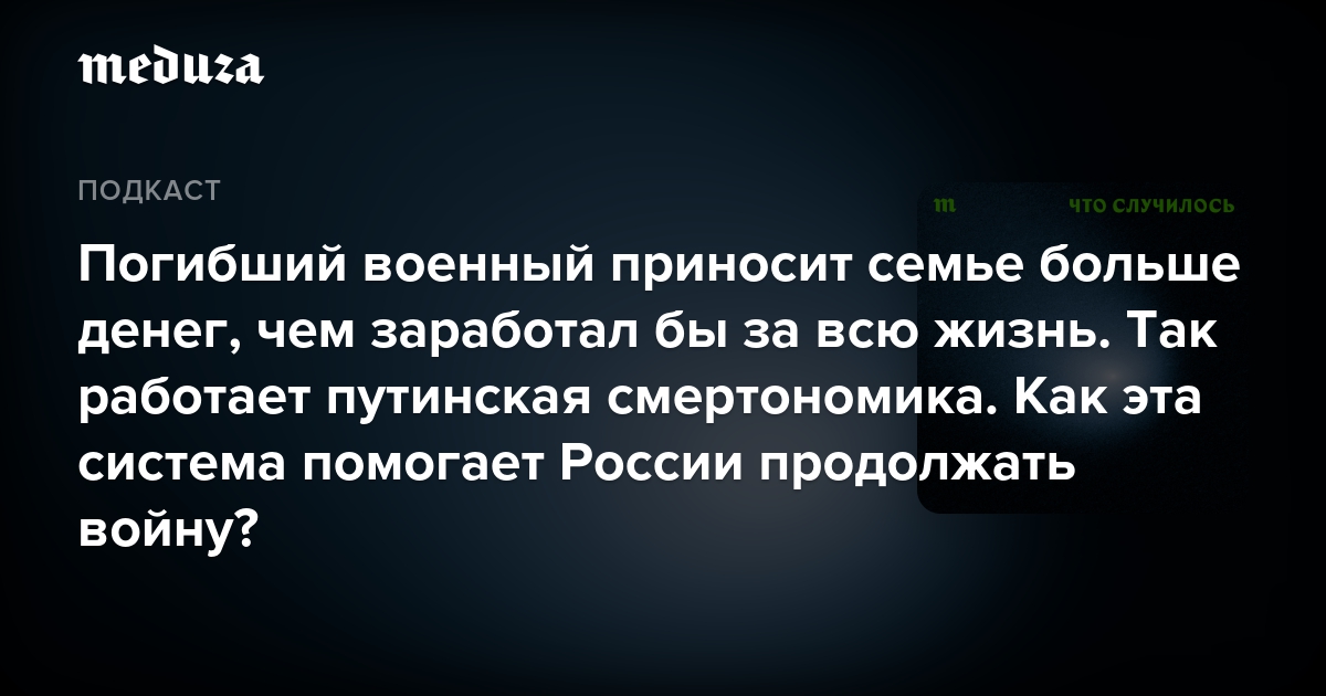 Этим словом он описывает уникальную ситуацию, при которой высокие выплаты военным в России (и их семьям — в случае гибели самих военных) обеспечивают стабильность режима и позволяют Кремлю продолжать войну. При этом погибший на войне приносит своей семье больше денег, чем, вероятно, заработал бы за всю жизнь.
