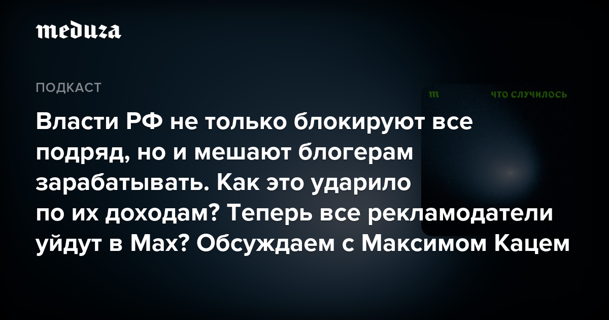 Как все это отразилось на их доходах? Что будет с рынком — неужели все рекламодатели перейдут в Max? Как зарабатывать в ютьюбе в 2026 году, если вы русскоязычный блогер? Владислав Горин говорит с политиком, блогером и медиаменеджером Максимом Кацем.