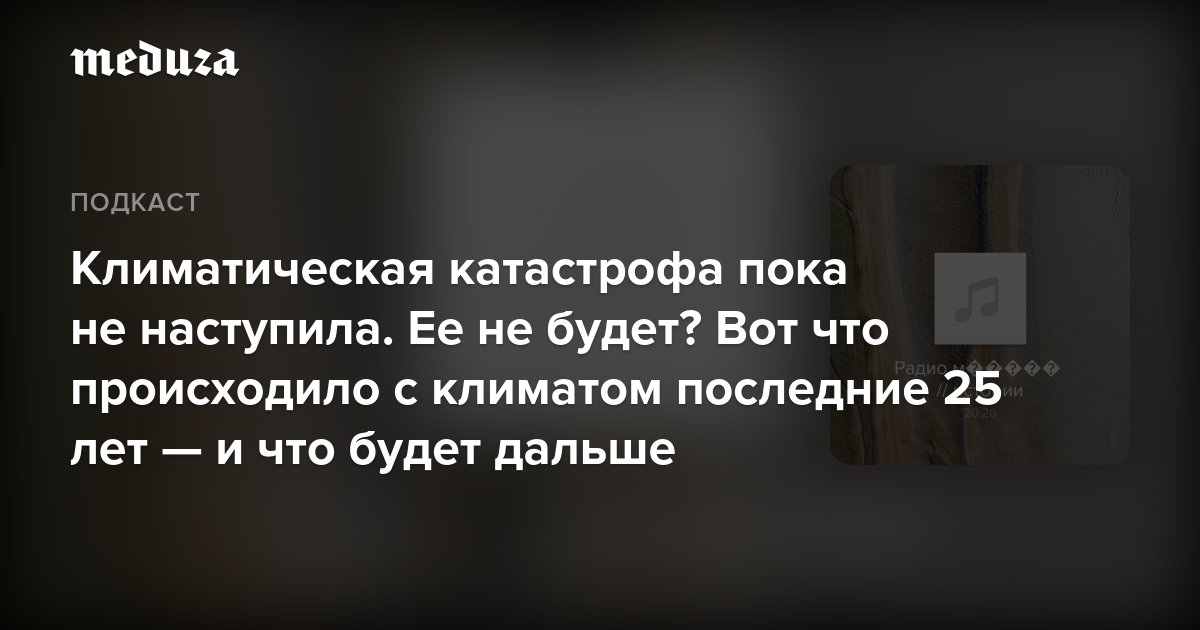 В XXI веке обещанная климатическая катастрофа пока так и не наступила. Значит ли это, что ее не будет и у нас еще есть шанс? Насколько реалистичны экологические цели разных государств и чего ждать от следующей четверти века? Аудиоверсия материала о климатических итогах последних двадцати пяти лет. Прочитать текст журналистки Катерины Никитиной можно здесь.