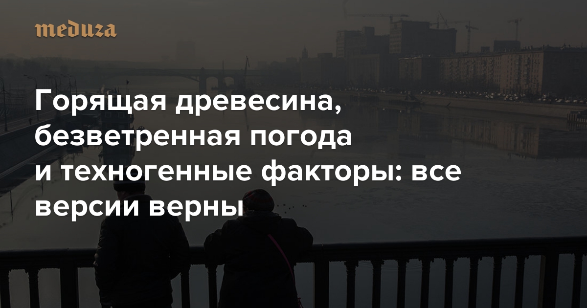 «Понятно, что нужны лабораторные показания, но пока можно говорить о совокупности факторов — безветренная погода, колоссальная автотранспортная перегрузка. Возможно, в воздухе еще остались следы от предыдущего горения», — говорит в беседе с «Медузой» координатор экологической организации «Мосэко» Михаил Антонов.
