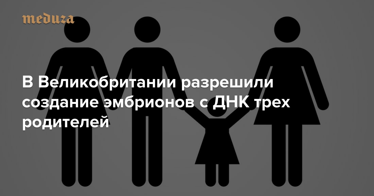 На этой неделе Палата Общин Британского парламента одобрила поправки в закон о работе с эмбрионами, которые разрешают донорство митохондрий при экстракорпоральном оплодотворении. Это означает, что дети, которые будут нести в своих клетках ДНК от трех человек — мамы, папы и еще одной женщины, — могут родиться уже в конце 2015 года. Мировые СМИ вышли с заголовками о детях с тремя родителями, но эксперты категорически против такой формулировки. Шеф-редактор проекта «Образовач» Александр Ершов по просьбе «Медузы» объясняет, что все это значит.