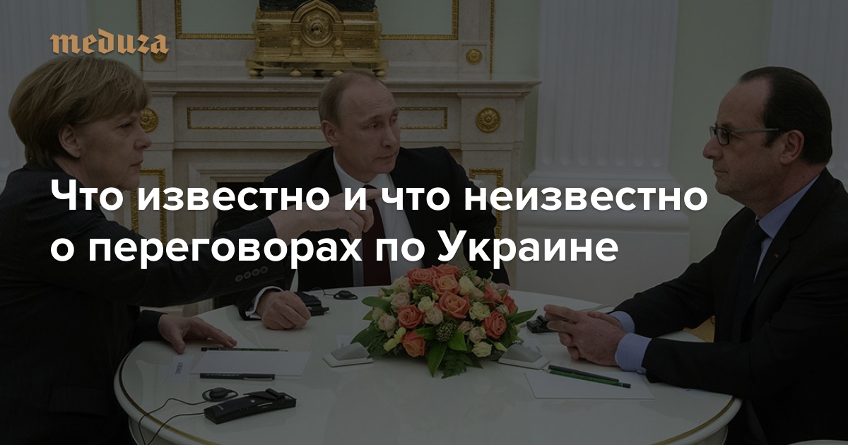 Канцлер ФРГ Ангела Меркель и президент Франции Франсуа Олланд 5 февраля съездили с внеочередным визитом к президенту Украины Петру Порошенко, а уже на следующий день — к президенту России Владимиру Путину. В воскресенье, 8 февраля, состоится очередной раунд переговоров между Путиным, Порошенко, Олландом и Меркель — на этот раз в формате видеоконференции. Судя по статусу и интенсивности переговоров, именно беседа 8 февраля станет определяющей для дальнейшего хода военных действий на Украине. За несколько часов до видеоконференции «Медуза» собрала в одном месте, что известно о переговорах и какие основные вопросы остаются открытыми.