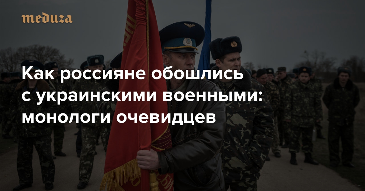 По данным телеканала ICTV, из 22 тысяч крымских военнослужащих на Украину решили вернуться четыре тысячи человек (не считая членов семей). Остальные продолжили военную службу в силовых структурах России. Всего на территории Крыма по состоянию на март 2014-го находились 193 воинских подразделения и учреждения Вооруженных сил Украины. К 26 марта над всеми подняли российские флаги. «Медуза» поговорила с украинскими военными, которым довелось встретиться с «вежливыми людьми».