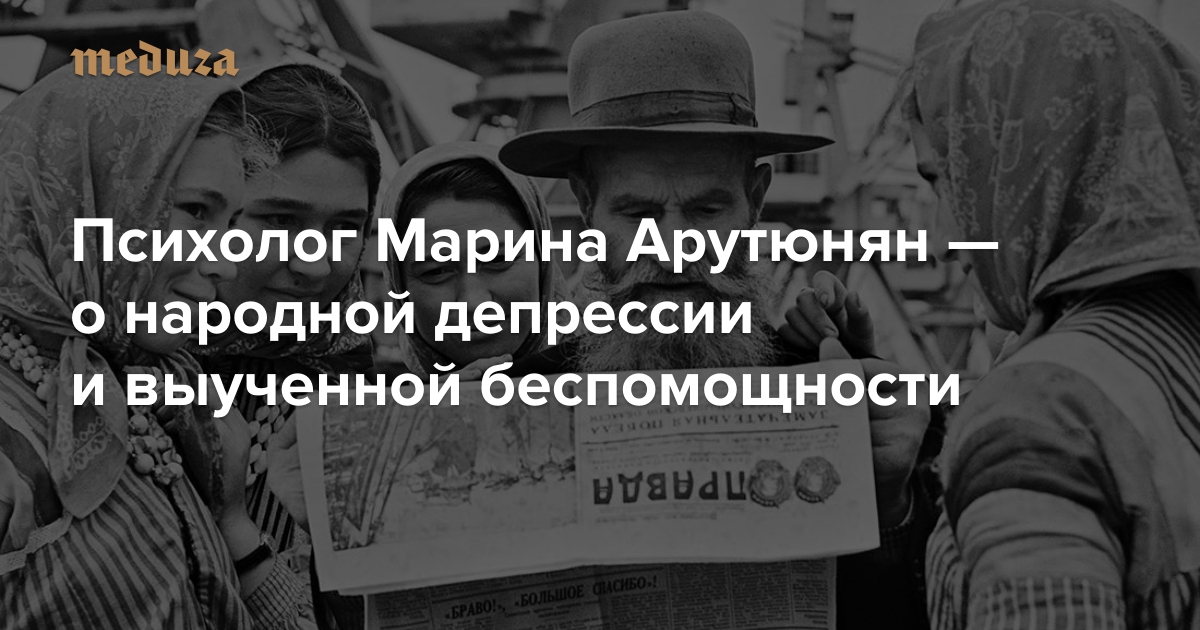 «Я чувствую себя Россией» Психолог Марина Арутюнян — о народной депрессии и выученной беспомощности