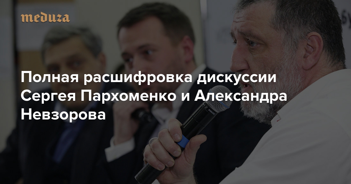 29 марта в рамках проекта «Открытая библиотека» в Санкт-Петербурге прошла серия дискуссий. «Медуза» представляет полную расшифровку беседы журналиста, одного из основателей проекта «Диссернет» Сергея Пархоменко и журналиста Александра Невзорова. Заявленная тема дискуссии — «Конец истории».