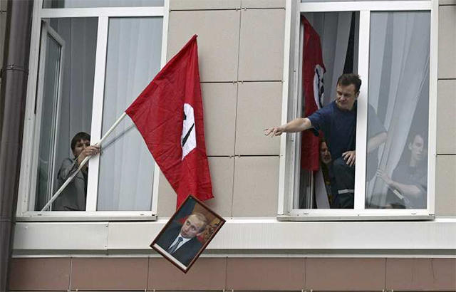 К тому же военный фотограф — это человек, который постоянно должен быть на войне, прыгать с одной войны на другую. Для меня это просто веха моей карьеры и моих интересов. Ты начинаешь с малого, с конфликта на улице. Для меня первой историей, которую я много-много месяцев делал — и, кстати, получил президентский грант при Путине, — была история про красную молодежь. Я провел достаточно много времени с АКМ и НБП (запрещена в России как экстремистская — прим. «Медузы»). Потом у нас появились протесты, и протестные истории стали интересны. И дальше из этих протестов интерес уже перерос в войны. Хотя я ездил на войны и до протестов 2012 года — Ливан, Беслан, «Норд-Ост», израильский конфликт, война в Осетии. Было много историй, но мне всегда казалось, что это такой же конфликт, как улица, только переросший в противостояние с применением тяжелой техники или вооружения, а не просто слов и палок.