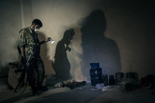 Потом нас сирийское правительство пригласило на официальный пресс-тур в пригороды, где оно воевало с повстанцами. Нашли склад химоружия, и повстанцы [его] типа сами использовали. Нам объясняют: вот самодельные контейнеры, мы отправили их на экспертизу, подозреваем, что это химическое оружие, потому что рядом были перчатки, противогазы и антидоты. Я это все снимаю, описываю, посылаю. Фотографии выходят с совершенно другими кэпшенами: сирийское правительство показывает газовые баллоны и бутылки для воды в качестве химического оружия, которое использовали повстанцы.
