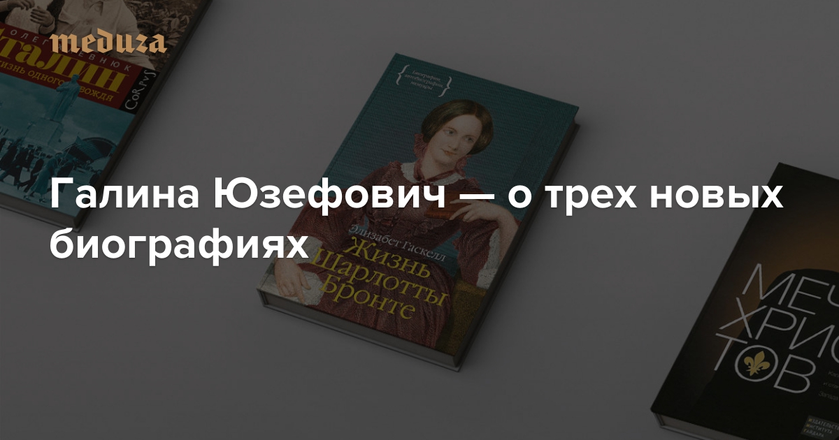 Литературный критик Галина Юзефович регулярно рассказывает на «Медузе» о самых главных книжных новинках, которые выходят в российских издательствах. Нынешний обзор посвящен биографиям — книгам «Сталин: Жизнь одного вождя» Олега Хлевнюка, «Жизнь Шарлотты Бронте» Элизабет Гаскелл и «Меч Христов. Карл I Анжуйский и становление Запада» Ярослава Шимова.