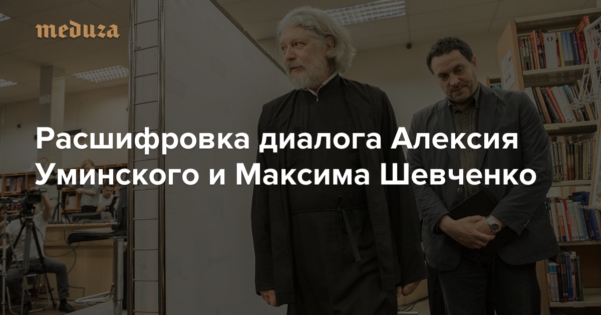 «Медуза» представляет расшифровку диалога журналиста Максима Шевченко и священника Алексия Уминского, который состоялся в рамках «Августовских диалогов» в библиотеке имени Маяковского в Санкт-Петербурге. Они говорили о «чувствах верующих», что их задевает и о том, кто говорит от имени Церкви.