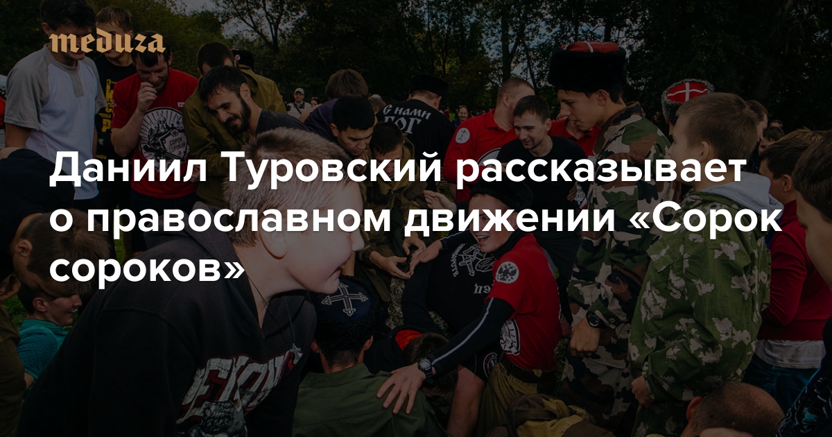 Больше двух лет при поддержке РПЦ в России существует православное движение «Сорок сороков». Его основная деятельность — охрана строительства храмов, крестных ходов и других церковных мероприятий. Кроме того, сторонники движения летом 2015-го напали на несанкционированный московский гей-парад и сорвали пикет против установки памятника князю Владимиру на Воробьевых горах. С июня «Сорок сороков» защищают строителей в парке Торфянка, где против возведения церкви бунтуют местные жители и активисты оппозиционных партий. Специальный корреспондент «Медузы» Даниил Туровский встретился с руководителями движения, чтобы выяснить, как устроена эта организация.