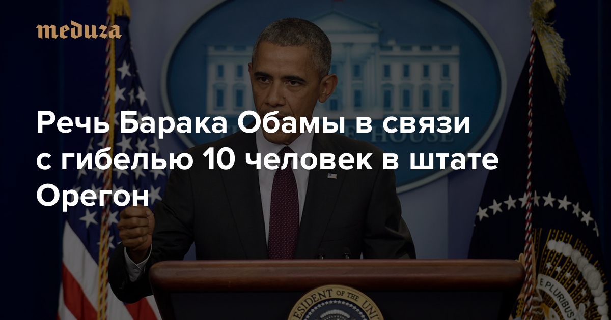 1 октября неизвестный мужчина открыл стрельбу в аудитории техникума Umpqua Community College в штате Орегон. 10 человек погибли, около 20 получили ранения. Сам преступник был убит в ходе перестрелки с полицией. Президент США Барак Обама выступил по поводу массового убийства с речью, в которой принес соболезнования родственникам жертв и заявил, что стране необходимо принять меры по контролю за оборотом оружия, чтобы подобные инциденты не превращались в рутину. «Медуза» приводит сокращенный перевод речи Обамы.