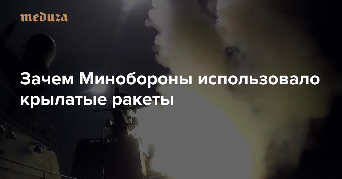 7 октября российские военные корабли, находящиеся в Каспийском море, выпустили 26 крылатых ракет «Калибр» по 11 объектам «Исламского государства» в Сирии. Эксперты по-разному отвечают на вопрос о том, зачем России использовать такое вооружение в локальной операции против нерегулярной армии. «Медуза» изучила основные версии.