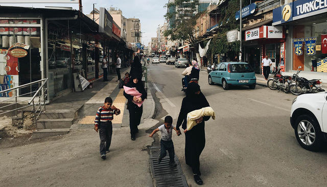 Район из нескольких улиц в южной части Газиантепа уже прозвали «турецким Алеппо». Торговые палатки здесь держат беженцы из Сирии. В них продают диски с национальной музыкой, дешевые телефоны, работают две парикмахерские. В одной из них — что-то вроде туристического агентства: его сотрудники обещают доставить людей из Газиантепа до Алеппо и Хомса, которые остаются пока под контролем антиправительственных и исламистских группировок (но не «Исламского государства»). В одной из соседних палаток готовят сирийский кофе — эспрессо с кардамоном.