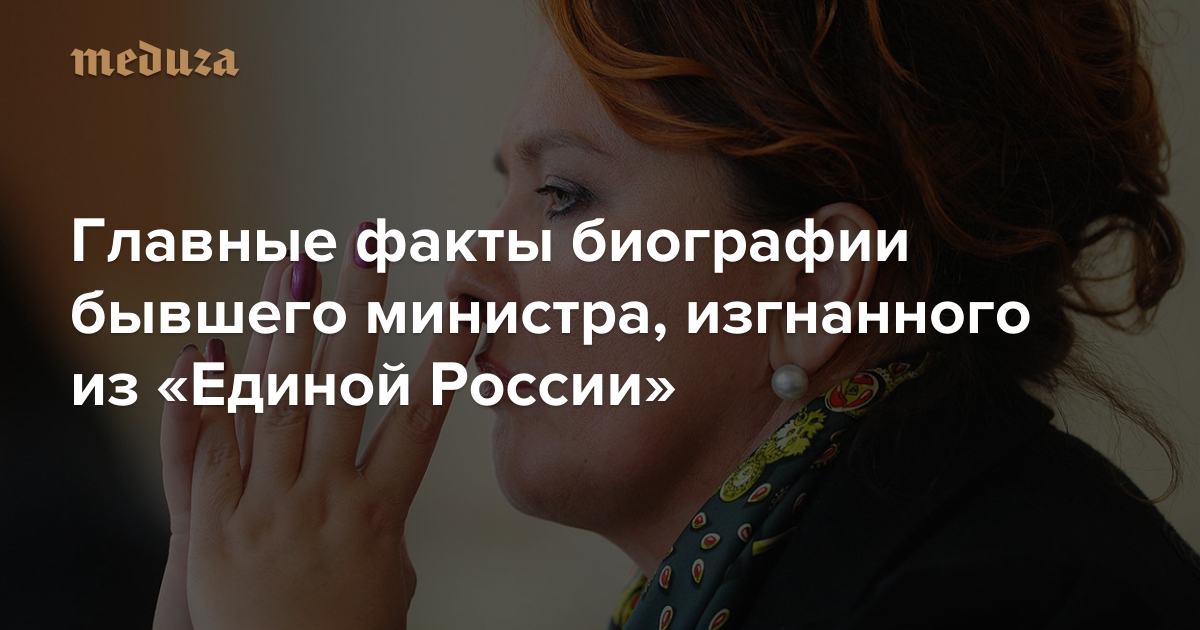 Бывшего министра сельского хозяйства Елену Скрынник исключили из «Единой России» за «потерю связи с партией». По времени это совпало с появлением информации об аресте ее швейцарских счетов (сама Скрынник данные о счетах не подтверждает). «Медуза» коротко напоминает основные факты биографии бывшего министра: чиновничья карьера Скрынник вплоть до 2012 года развивалась очень быстро, после чего резко оборвалась.