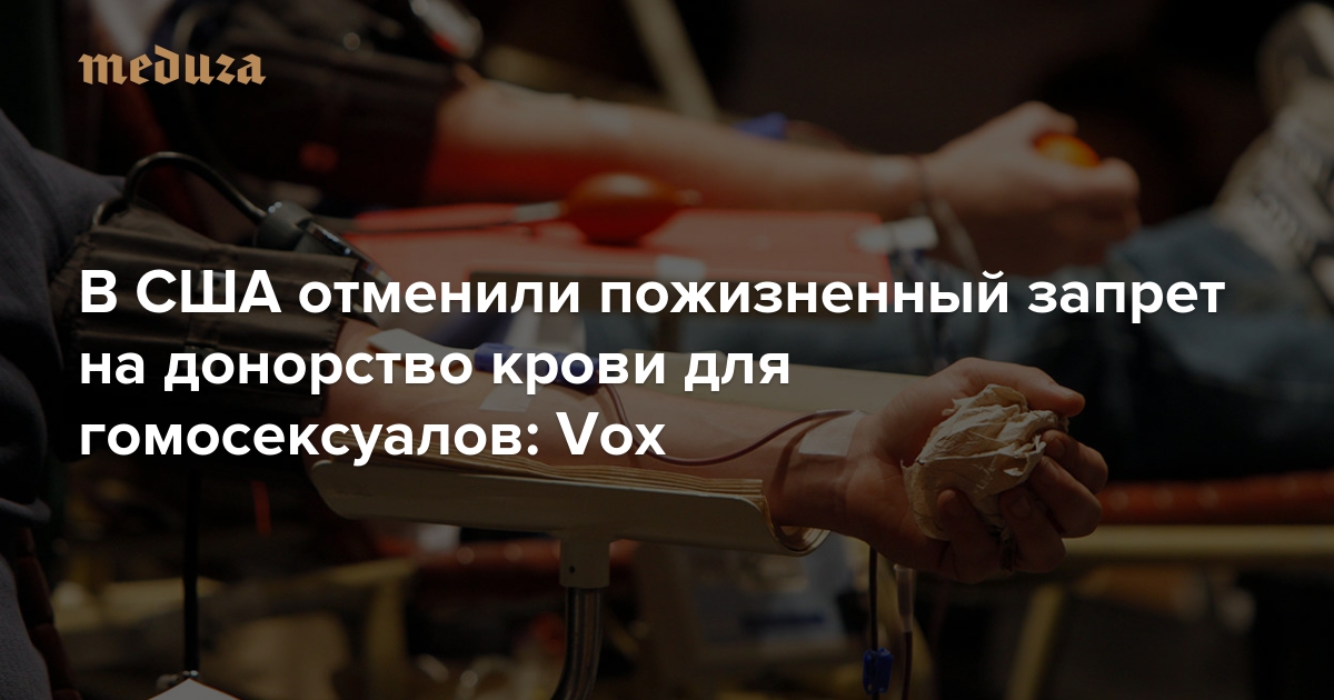 Хуже, чем в России В США отменили пожизненный запрет на донорство крови для гомосексуалов: Vox