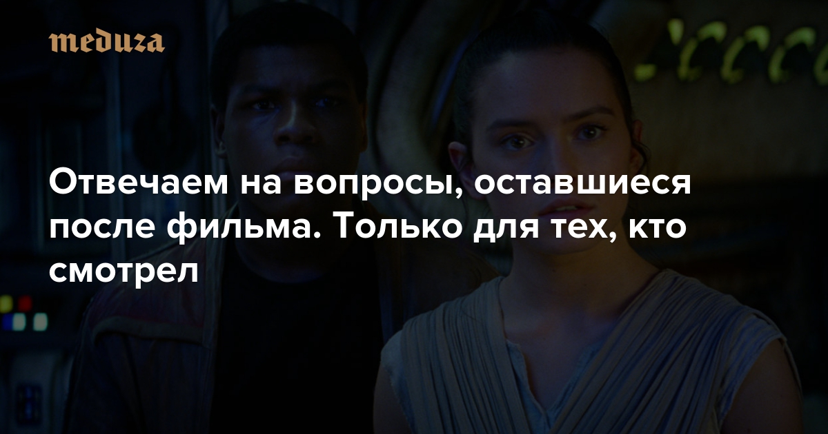 За первую неделю после выхода седьмого эпизода «Звездных войн» с ним успели ознакомиться почти все поклонники киносаги. Эмоции у них разные (как правило, ностальгические), но многим показалось, что изрядное количество вопросов в фильме оставлено без ответа. «Медуза» изучила, какими вопросами задавались западные СМИ и какие ответы они нашли (или придумали).