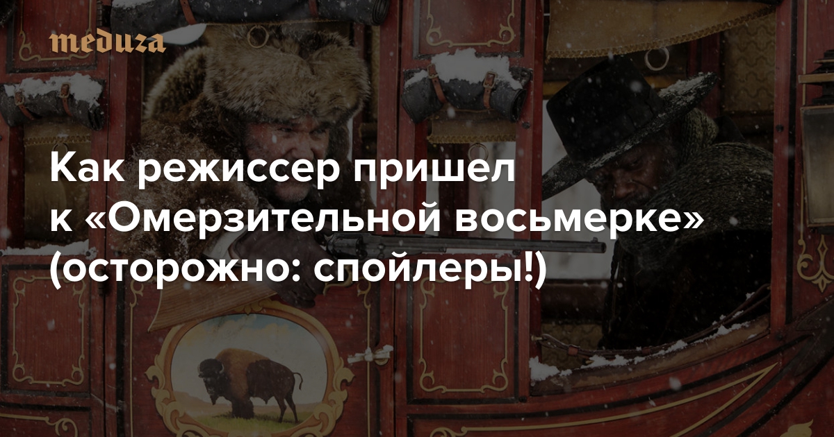 В России на широкие экраны (после ограниченного показа) вышла «Омерзительная восьмерка» — восьмой фильм Квентина Тарантино, наполовину вестерн, наполовину — мрачный детектив. По просьбе «Медузы» редактор сайта Arzamas.academy Кирилл Головастиков попытался разобраться, о чем эта картина и каково ее место в фильмографии режиссера. Внимание, в тексте есть спойлеры.