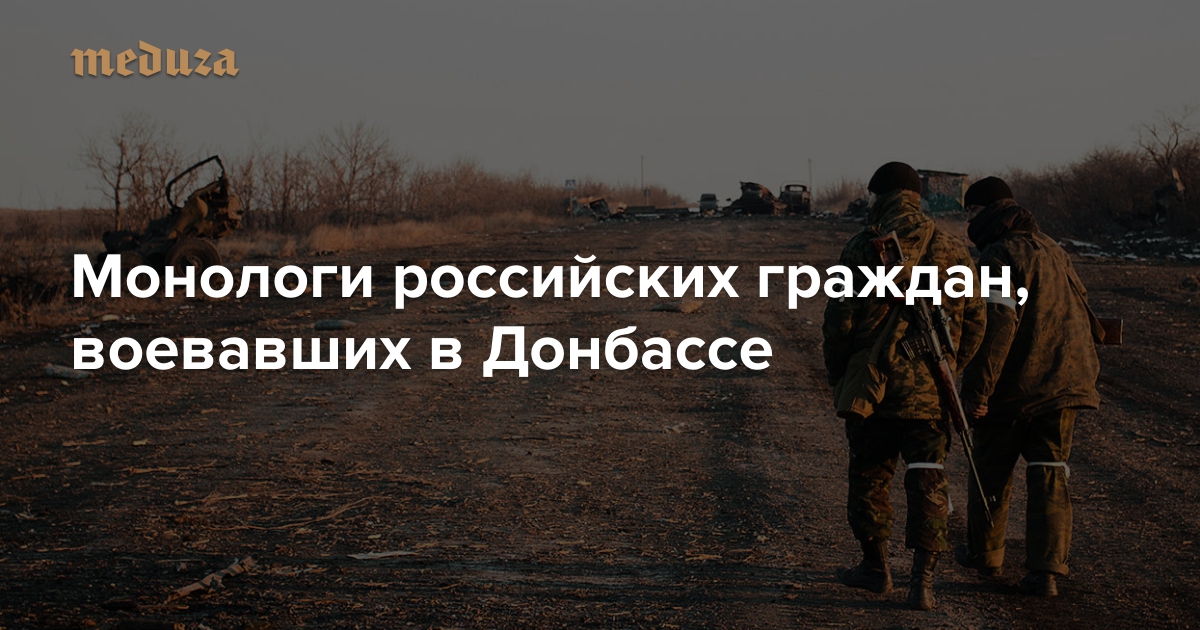 Вооруженный конфликт в Донбассе фактически завершился осенью 2015 года. Российские граждане, отправившиеся туда добровольцами, возвращаются домой. Официально их никто за это не благодарит. Бывшие бойцы самопровозглашенных республик все чаще попадают в криминальную хронику (и лишь однажды суд признал смягчающим обстоятельством тот факт, что пьяный водитель воевал в ДНР). Многие из этих людей даже не задумываются о том, что они состояли в незаконных вооруженных формированиях на территории другой страны. Монологи воевавших в Донбассе российских граждан по просьбе «Медузы» записал журналист Георгий Переборщиков.