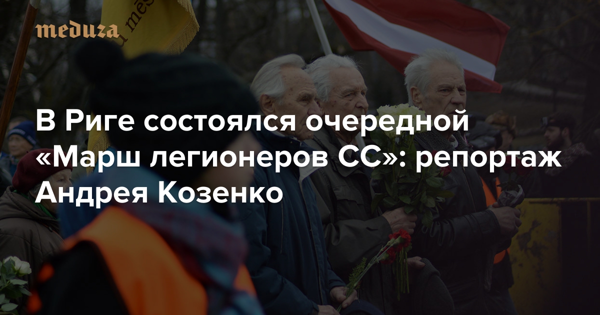 В среду, 16 марта, в Риге прошло ежегодное «шествие латышских легионеров СС». В марше приняло участие около тысячи человек, но никого из них по возрасту уже нельзя было отнести к участникам Второй мировой. Люди с плакатами «Мы против коммунизма и нацизма» прошествовали от Домской площади до монумента Свободы, возложив к нему цветы. За маршем наблюдал журналист «Медузы» Андрей Козенко.