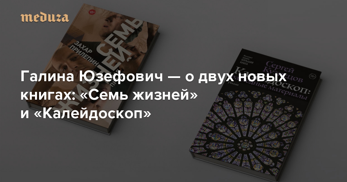 Еженедельно литературный критик Галина Юзефович рассказывает на «Медузе» о самых интересных и важных книгах, изданных в России. В нынешнем обзоре — сборник рассказов Захара Прилепина «Семь жизней» и роман в рассказах Сергея Кузнецова «Калейдоскоп».