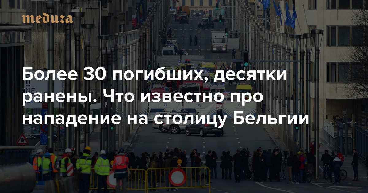 Утром во вторник, 22 марта, в столице Бельгии произошло по меньшей мере три взрыва. Сначала два взрывных устройства были приведены в действие в аэропорту Завентем. Спустя час произошел взрыв на станции метро. Власти официально признали факт теракта в аэропорту. В результате взрывов погибли более 30 человек; пострадали несколько десятков. Число жертв растет. «Медуза» рассказывает, что известно про нападение на Брюссель.