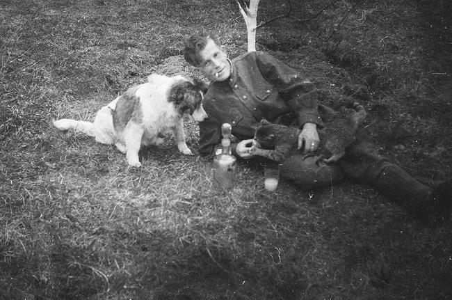 Мы не любили немцев и открыто между собой об этом говорили. Вот помню случай, который отложился в детской памяти. После того как немцы уехали, нам пришлось содержать их кошек и собак. И они казались нам необычными, не такими, как наши животные. У нас в доме остались немецкие кот и собака. Собака сразу сошла с ума, а кот, серый такой и большой, жил некоторое время у нас. Вот однажды пришли мы со школы и сели за стол. А миска стояла посередине стола, далеко было тянуться. Мама нечаянно капнула на него (кота) горячим супом. Реакция была необыкновенной. Он спокойно отошел в сторону, залез на камин и просидел там около часа. А потом, когда мама стала убирать со стола, он словно взбесился. Прыгнул, пролетел у мамы над головой и вцепился когтями в деревянный стул. Замер и умер. Так мама с отцом говорили про него, что, мол, фашист натуральный.