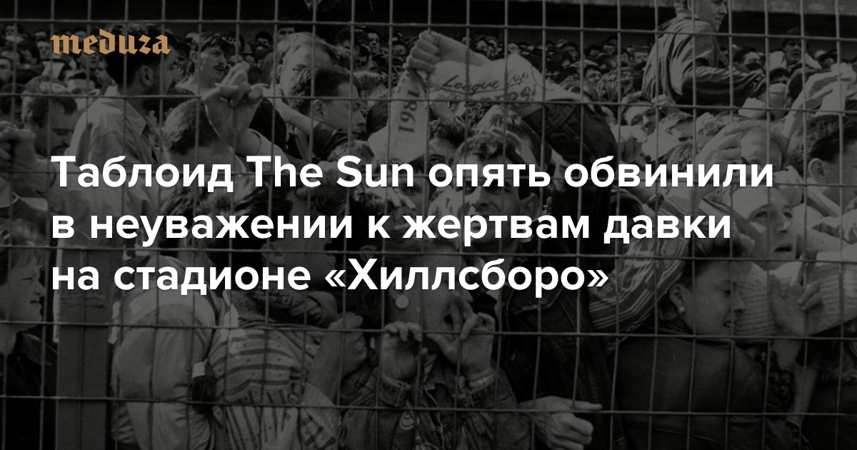 С тех пор, как на британском стадионе «Хиллсборо» произошла массовая давка, в которой погибли 96 человек, прошло уже 27 лет. Но таблоид The Sun до сих пор оправдывается за передовицу, обвинявшую в случившемся фанатов. Очередная волна критики в адрес британской газеты поднялась 27 апреля 2016 года, когда издание не поставило на первую полосу новость о том, что виновными в трагедии признали полицейских.