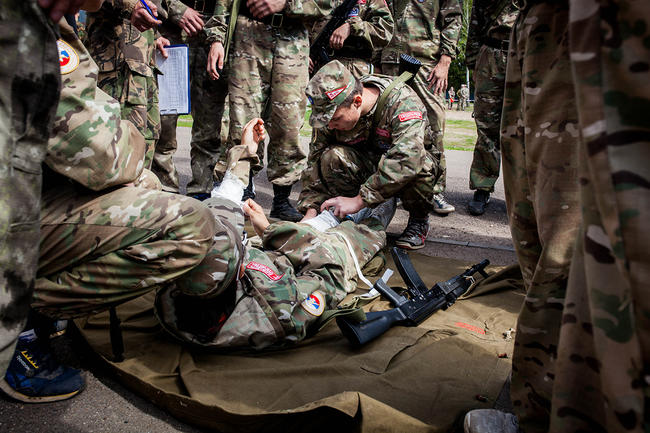 «Все, что вы видите, мы делаем для того, чтобы эти дети выжили», — так Олег Баканач отвечает на вопрос, можно ли обойтись без военной формы, учебных гранат и мастер-классов от отрядов спецназа. «Если не дай бог будет война, нужны навыки и умения, — продолжает он. — На этих детях большая ответственность, потому что за ними огромная страна. Вы же видите, что происходит в мире: желающих не просто покусать, а нанести максимальный урон России очень много. Мы здесь не призываем брать автоматы, мы хотим, чтобы дети научились созидать. Но если что-то случится, они должны уметь постоять за себя».