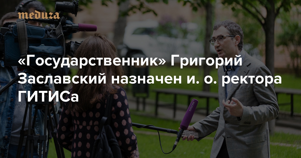 Министр культуры РФ Владимир Мединский 16 мая представил коллективу ГИТИСа нового исполняющего обязанности ректора — театрального критика, руководителя рабочей группы по театру Общественного совета при Минкульте РФ Григория Заславского. По уставу ГИТИСа в вузе еще должны пройти выборы ректора. К кандидатуре Заславского в театральном сообществе предъявляют множество претензий — и к его репутации, и к отсутствию опыта на руководящей позиции. «Медуза» рассказывает, что говорят про нового и. о. ректора крупнейшего театрального вуза страны.