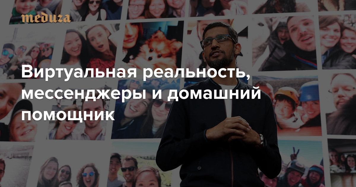 В Сан-Франциско прошла конференция Google I/O, на которой поисковик представил свои новые разработки. «Медуза» рассказывает только про главное: платформу для виртуальной реальности, новые приложения для общения и домашнего помощника, который умеет гуглить и играть музыку.