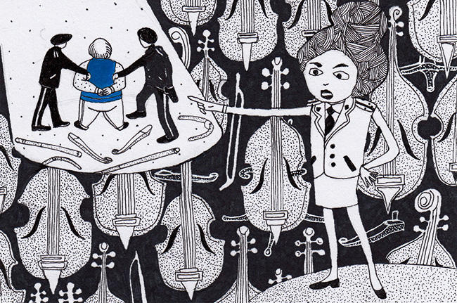 Следователь Карасик и ее команда молча производили опись, стараясь не удивляться стоимости каждого из 50 украденных инструментов. Маэстро не переставал вздыхать и причитать.