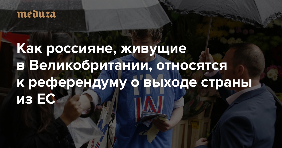 23 июня в Великобритании пройдет референдум о выходе страны из Европейского Союза. Его результат непредсказуем: сторонников и противников «Брекзита» (этим термином и обозначается возможный выход Великобритании из ЕС) примерно поровну. В Лондоне живет большая русская диаспора, некоторые из эмигрантов уже получили гражданство и право голосовать. Специальный корреспондент «Медузы» Илья Жегулев выяснил у героев своего текста о русских в Лондоне, что они думают о предстоящем референдуме.