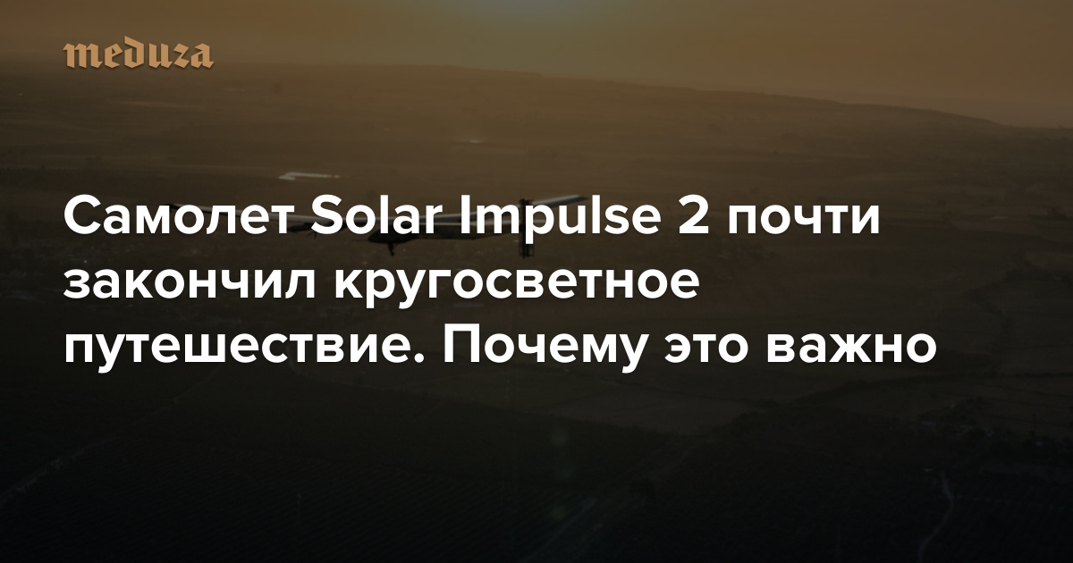 Утром 23 июня самолет Solar Impulse 2 завершил первый в истории перелет на солнечных батареях через Атлантический океан. Solar Impulse 2 уже больше года пытается облететь мир, не потратив ни капли нефти. В 2015 году путешествие пришлось на девять месяцев прервать из-за поломки. «Медуза» рассказывает, зачем команда Solar Impulse затеяла кругосветный полет и почему это важно.