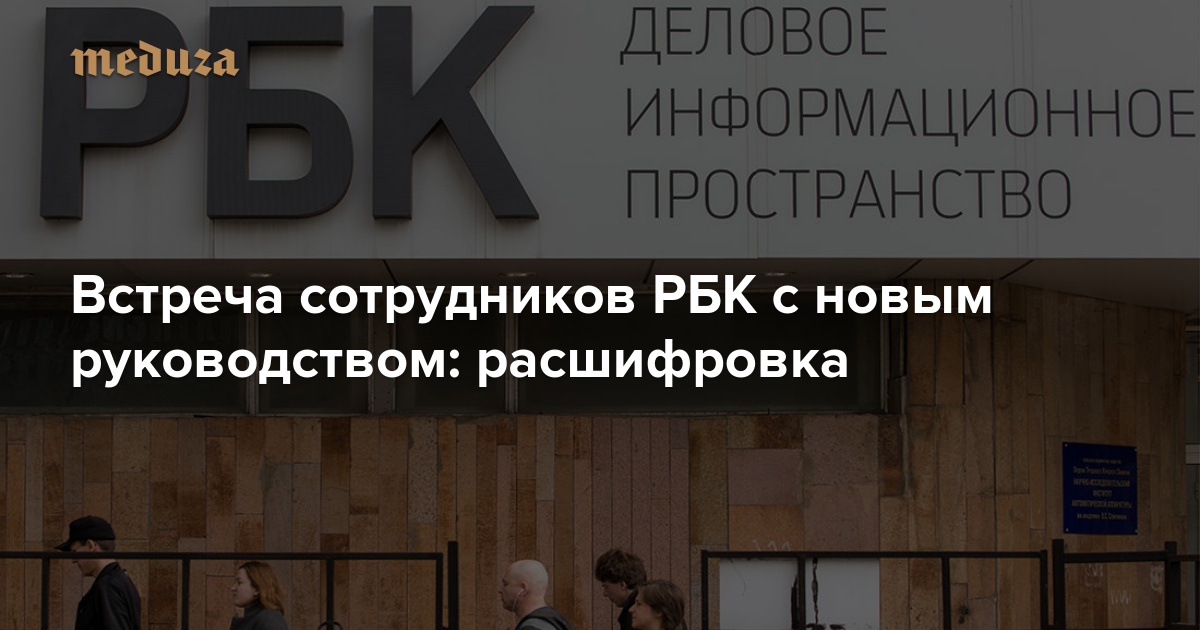 В начале июля руководителями объединенной редакции РБК были назначены Елизавета Голикова и Игорь Тросников. Они пришли на место Елизаветы Осетинской и Романа Баданина, которые вынуждены были покинуть РБК в середине мая — формально по соглашению сторон, но на самом деле, как утверждают многочисленные источники, из-за недовольства публикациями РБК в Кремле. Вслед за ними уволились некоторые сотрудники; другие журналисты решили дождаться нового руководства, чтобы понять, стоит ли с ним работать. Вечером 7 июля новые руководители РБК встретились с редакцией. «Медуза» получила аудиозапись с этой встречи и публикует ее расшифровку с незначительными сокращениями.