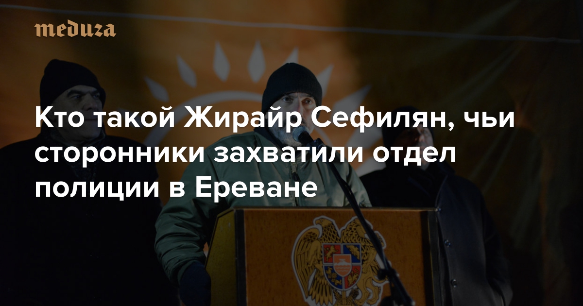 Утром 17 июля вооруженные люди взяли заложников в отделе полиции в Ереване. Они назвали себя членами движения «Учредительный парламент» и потребовали отставки президента Армении Сержа Саргсяна, а также освобождения оппозиционного политика Жирайра Сефиляна. Его в июне 2016 года арестовали за незаконное хранение оружия. Сефилян вместе с другими оппозиционерами, в том числе кандидатом в президенты Армении на выборах 2013 года Раффи Ованнисяном, создал движение «Новая Армения». «Медуза» рассказывает, что известно о Сефиляне.