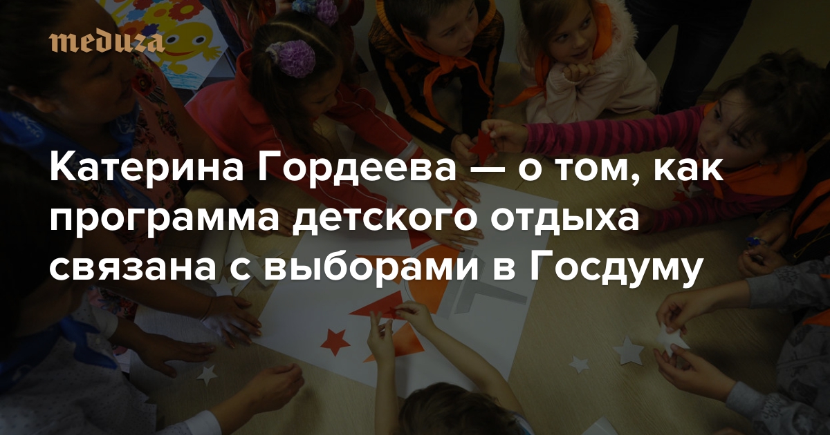 20 июля стало известно, что участница праймериз «Единой России», заместитель главы Департамента социальной защиты и здоровья населения Москвы Татьяна Барсукова сняла свою кандидатуру с выборов в Госдуму. Барсукова отвечала в столице за программу «Московская смена» — фактически под флагами «Единой России» она организовывала отдых местных детей из малоимущих семей. Подпись этой чиновницы стояла на всех контрактах с организацией «Парк-отель „Сямозеро“», в том числе на том, по которому в Карелию поехали школьники, попавшие в шторм 18 июня 2016 года — тогда погибли 14 детей. Спецкор «Медузы» Катерина Гордеева рассказывает, как Татьяна Барсукова занималась детским отдыхом, параллельно проводя предвыборную кампанию.