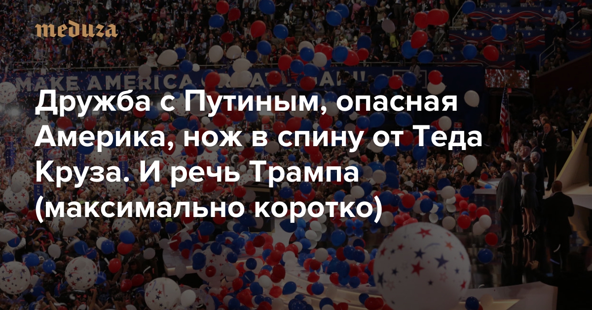 Съезд Дональда Трампа. Главное Дружба с Путиным, опасная Америка, нож в спину от Теда Круза. И речь Трампа (максимально коротко)