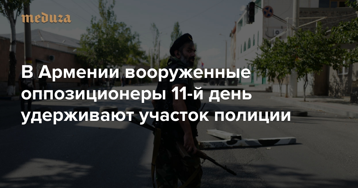 В Ереване 11-й день продолжается противостояние между властями и вооруженными оппозиционерами, захватившими полицейский участок. В ночь на 27 июля между сторонами произошла новая перестрелка. Около захваченного участка люди каждый день устраивают акции протеста. «Медуза» рассказывает, что происходит в Ереване.