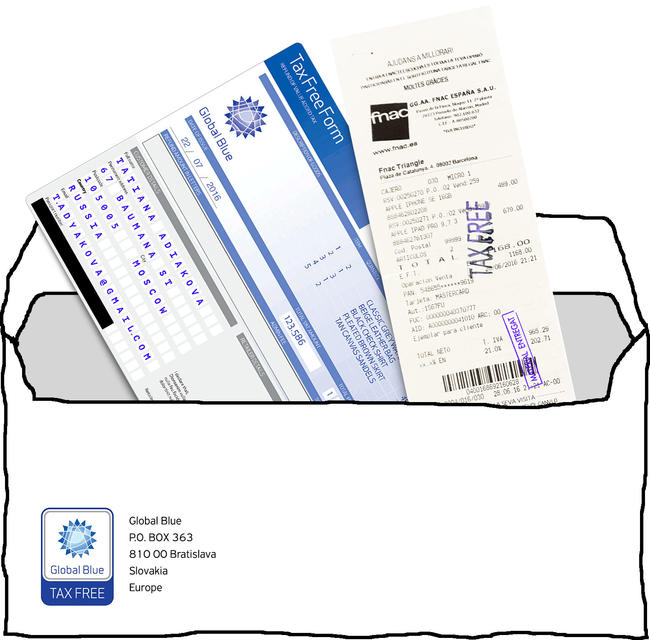Если к таможенникам огромная очередь или времени до вылета осталось мало, главное — проштамповать заявку у таможенников. После этого отправьте заявку и чеки по почте оператору — тут вам пригодится конверт, полученный вместе с заявкой на такс-фри. Обязательно сфотографируйте документы перед отправкой: если письмо затеряется, фотографии документов помогут выяснить отношения с оператором.
