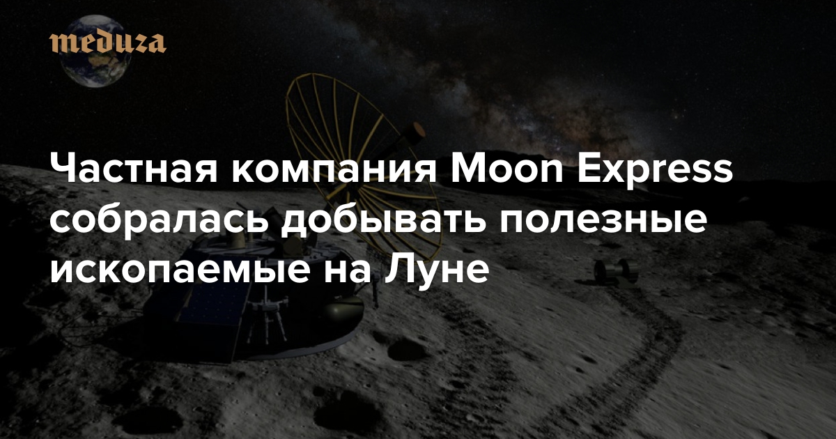 Власти США 3 августа впервые в истории разрешили частной компании совершить полет на Луну. Moon Express планирует доставить космический аппарат на поверхность Луны уже в 2017 году, а через некоторое время — начать добывать на спутнике Земли полезные ископаемые.
