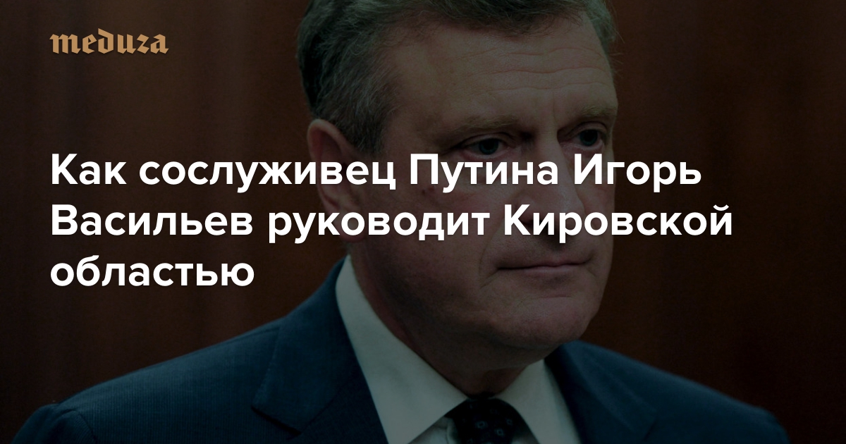 Вечером 22 августа суд продлил арест бывшему губернатору Кировской области Никите Белых, арестованному по обвинению в получении взятки, еще на четыре месяца. Уже почти месяц у региона новый временно исполняющий обязанности губернатора — сослуживец Владимира Путина по КГБ, бывший глава Росреестра Игорь Васильев. В прошлом Васильев представлял в Совете Федерации Республику Коми, глава которой тоже теперь сидит в тюрьме. По просьбе «Медузы» журналистка портала «Свойкировский» Дарья Орлова рассказывает о первых шагах нового руководителя и о том, как в Кирове вспоминают предыдущего.