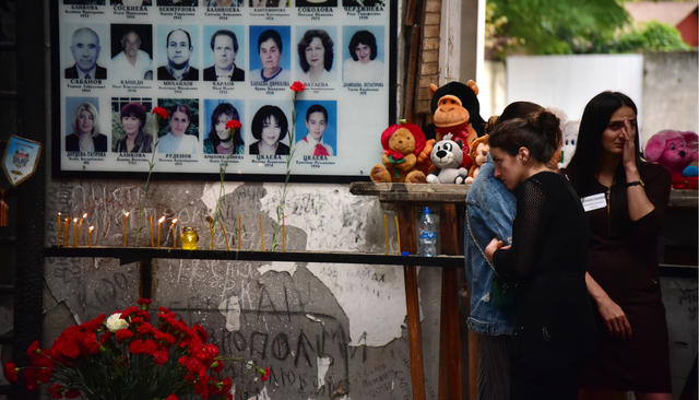 — Скомпрометировать нынешнее руководство, в том числе наше МВД, что пропустили таких людей. Все это заготовка перед выборами, это всем ясно. Не поддерживаю этот лозунг, надо оставить людей в покое и дать им переживать свое горе, — говорит мужчина и уходит в дом. Охранник объясняет, что у него в школе погибли жена и внучка.